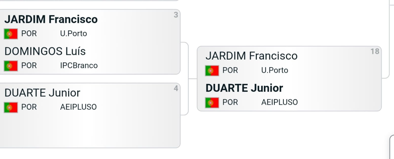 Na repescagem, mediu forças com Lucas Lacerda, da Associação de Estudantes da Faculdade de Motricidade Humana (AEFMH), que viria a alcançar o 3.º lugar. Francisco Jardim acabou por terminar a competição na 9.ª posição geral.